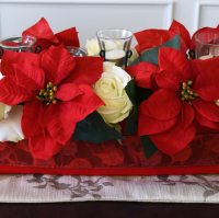 Beautiful! I could think of lots of cute places to use those burlap roses. Happy first Christmas blogging. This is also my first although I bought my domain in December.